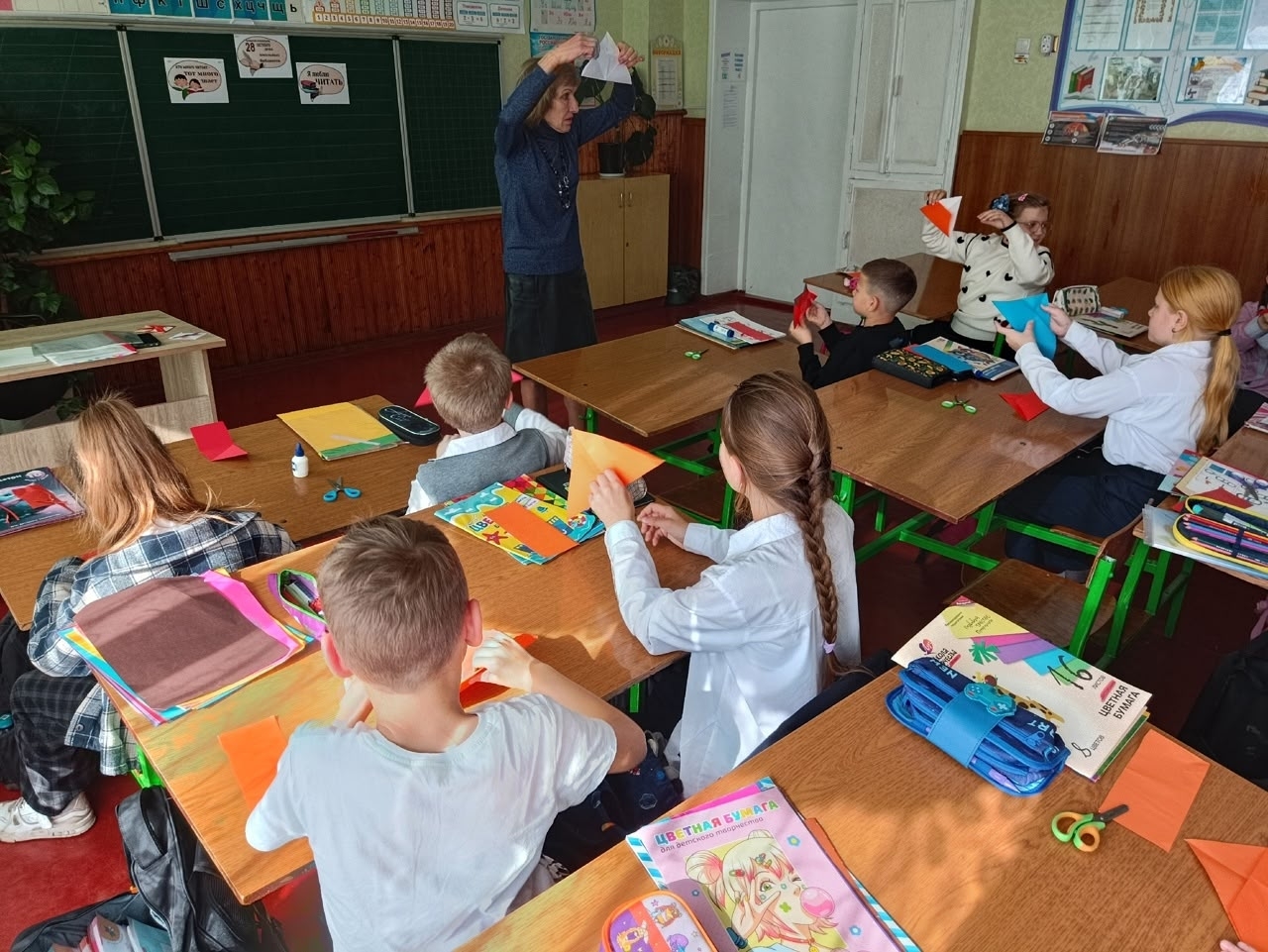 | С заботой о книгах 22 октября учащиеся 3 – А класса (классный руководитель Ревина О.Г.) пригласили школьного библиотекаря, Деревянко Татьяну Станиславовну, с целью проверки сохранности школьных учебников. Все вместе сделали зоо-закладки «Лисичка», которым быстро нашли применение. Ребята, книги – наши друзья! Берегите их! #Росдетцентр #НавигаторыДетства80 #книжнаяполка |