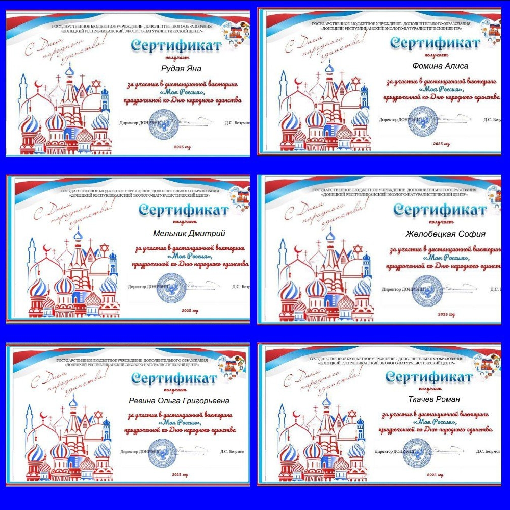 | Дистанционная викторина «МОЯ РОДИНА» Учащиеся 3 – А класса приняли участие в викторине «Моя Россия», приуроченной ко Дню народного единства. #УчитьсяВДонбассе #ДополнительноеОбразованиеДНР #УраКаникулы #праздничный_календарь |