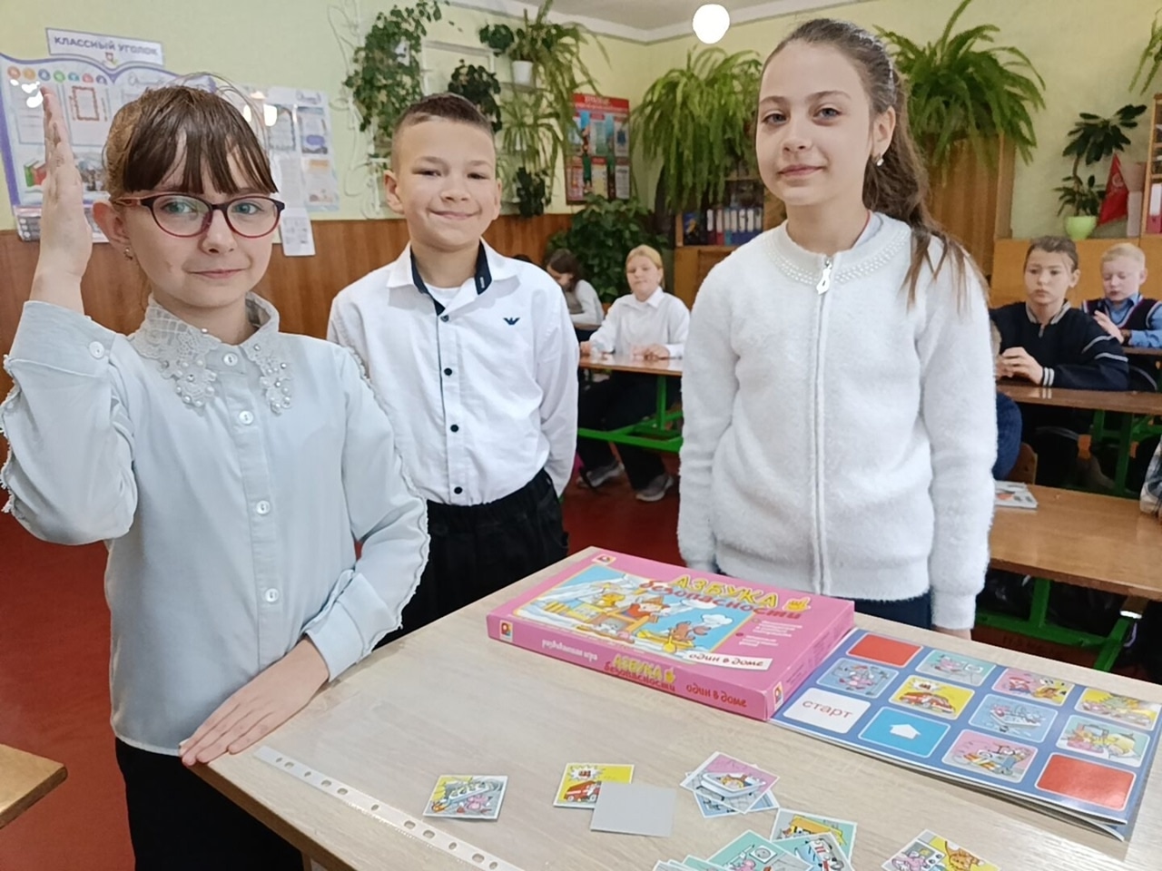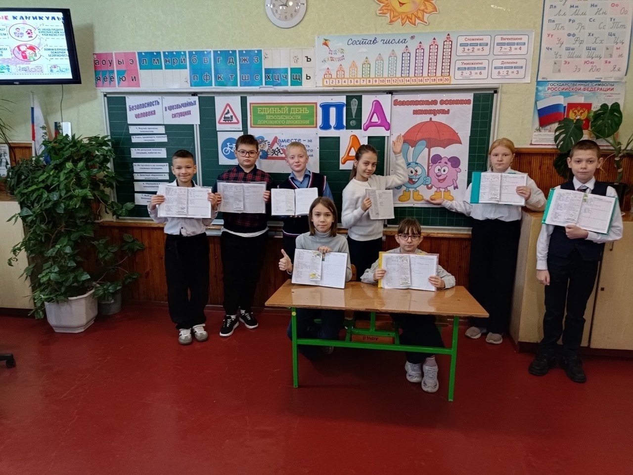 | 21 октября в 3 – А классе (классный руководитель Ревина Ольга Григорьевна) прошёл Единый день безопасности дорожного движения «Вместе – за безопасность дорожного движения», который плавно перешёл на тему «Безопасные каникулы. Правила поведения на осенних каникулах». Мероприятие проходило в виде экзамена от Смешариков. За каждый правильны ответ по знанию ПДД участник получал тематическую фишку, которые после распределяли по игровым полям для повторения: пожарная безопасность, электробезопасность, обращение с газом, печами. Дети вывели алгоритм действий при чрезвычайных ситуациях, вспомнили о неизвестных и взрывоопасных предметах. Повторили правила «Безопасные осенние каникулы», вклеили их в дневники и подписались об ознакомлении. Было увлекательно и познавательно! #ЮИД #единыйденьдорожнойбезопасности #БезопасностьНаДорогах #НавигаторыДетства80 |